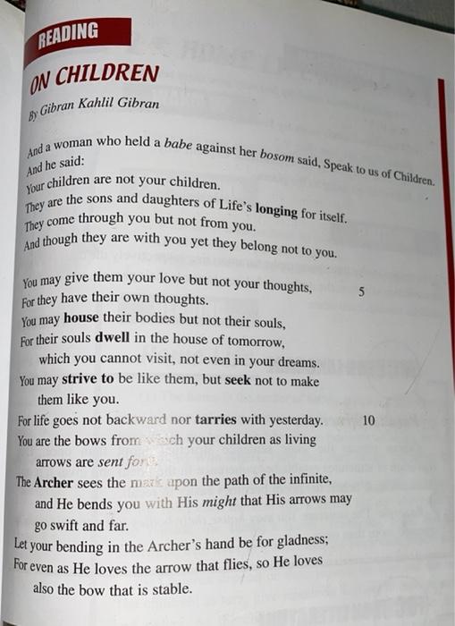 Evgeny Atamanenko Shutterstock. On Children Poem by Khalil Gibran extracted from the poet Khalil Gibran work The Prophet which is his best known work. Your children are not your children.