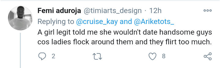 Finally another reason why a good looking guy wont get the girl that he really wants is that. Although people often think cheating is all about sex the reality is different. A twitter user identified as Mide is disturbed about the fact that most attractive men declare they dont have a partner.